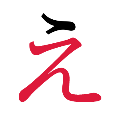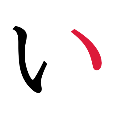 - Rechts ein kürzerer, sanft gegenläufig gekrümmter Strich.