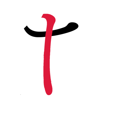 - Senkrecht von oben nach unten durch den ersten Strich.